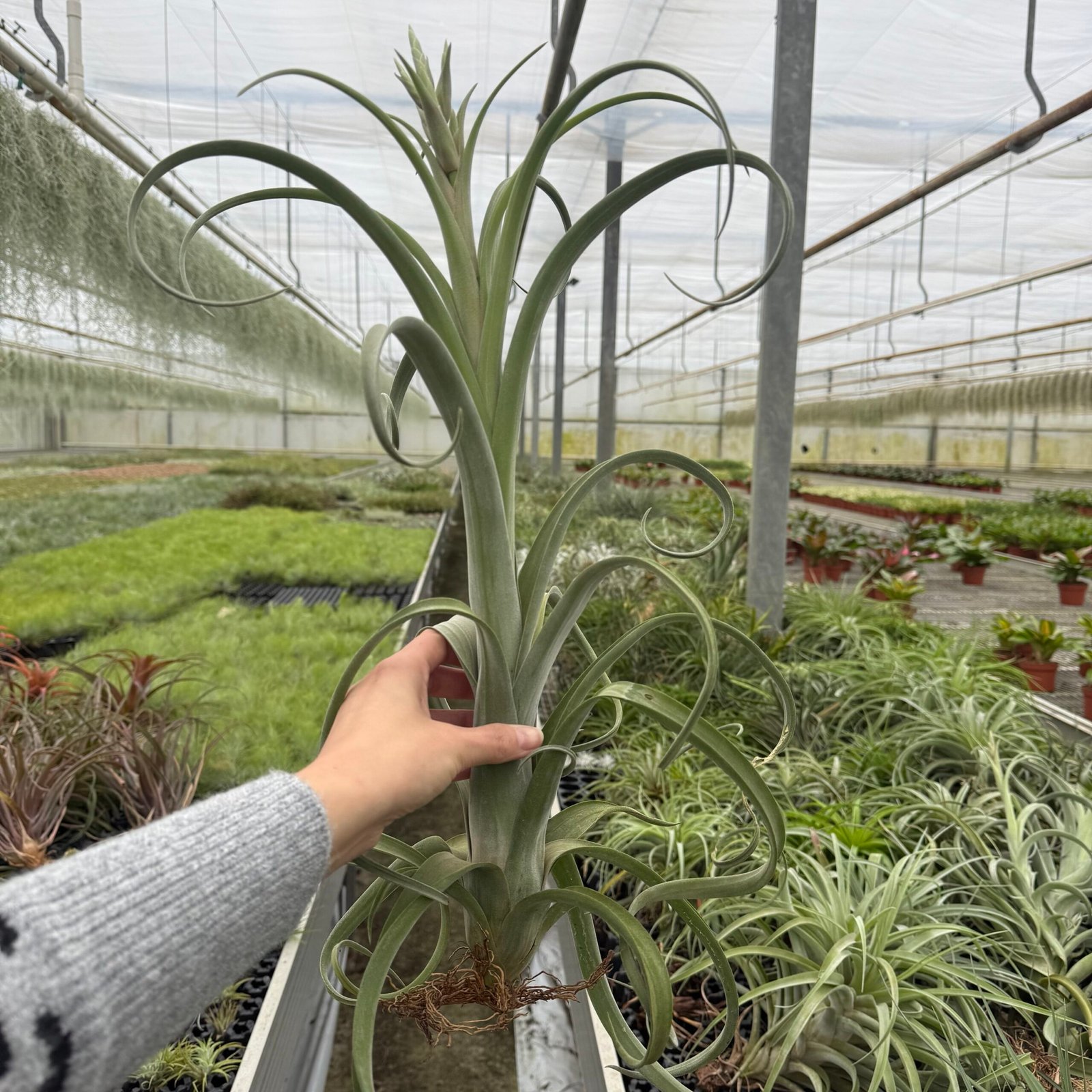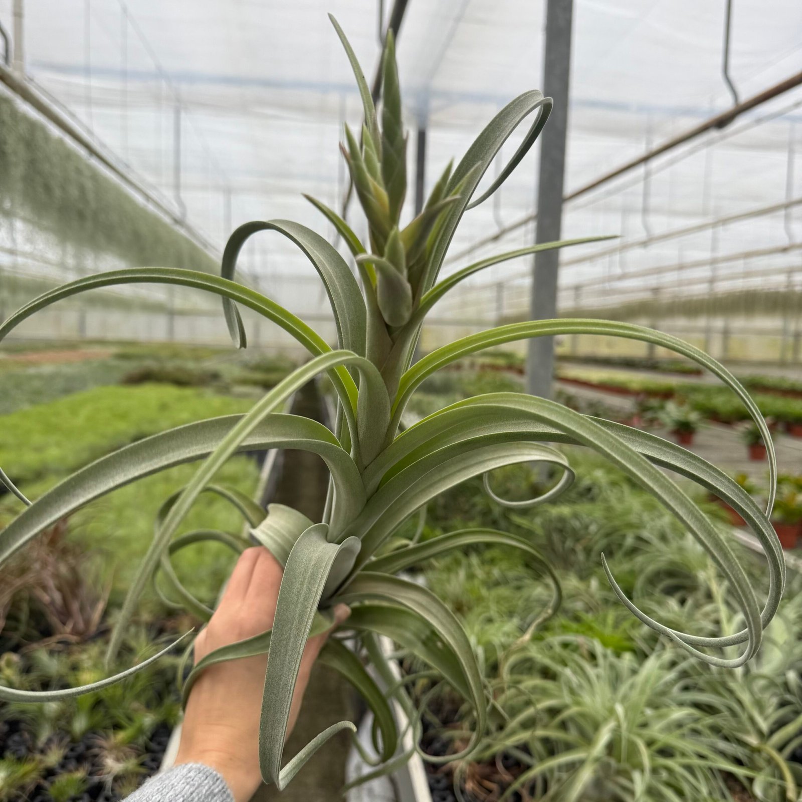 Dit is toch wel echt een speciale luchtplant. Dit luchtplantje met de naam Curly Slim is echt een apart luchtplantje. Het luchtplantje heeft tentakels als bladeren en op deze tentakels zitten tricoms. Tricoms zijn kleine grijze haartjes die ook wel bladschubben worden genoemd. Deze bladschubben beschermen de plant tegen verbranding van direct zonlicht.
