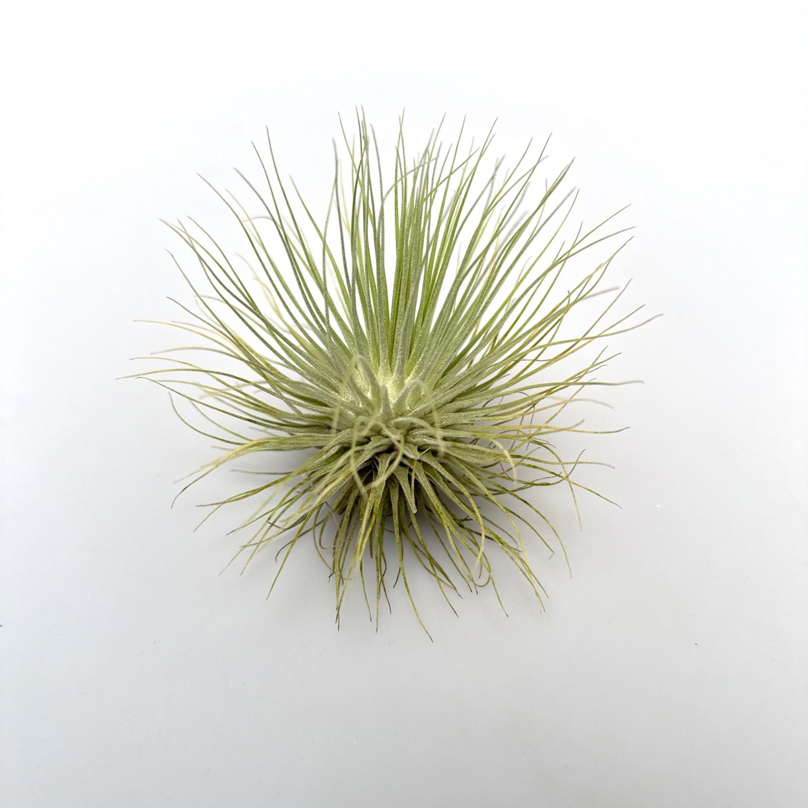 De Tillandsia Baileyi heeft geen bladeren maar eerder tentakels. Dat maakt dit luchtplantje heel geschikt om ondersteboven op te hangen in bijvoorbeeld een zee-egel.